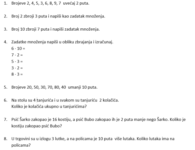 PONAVLJANJE: Množenje brojevima 2, 10 i 3
